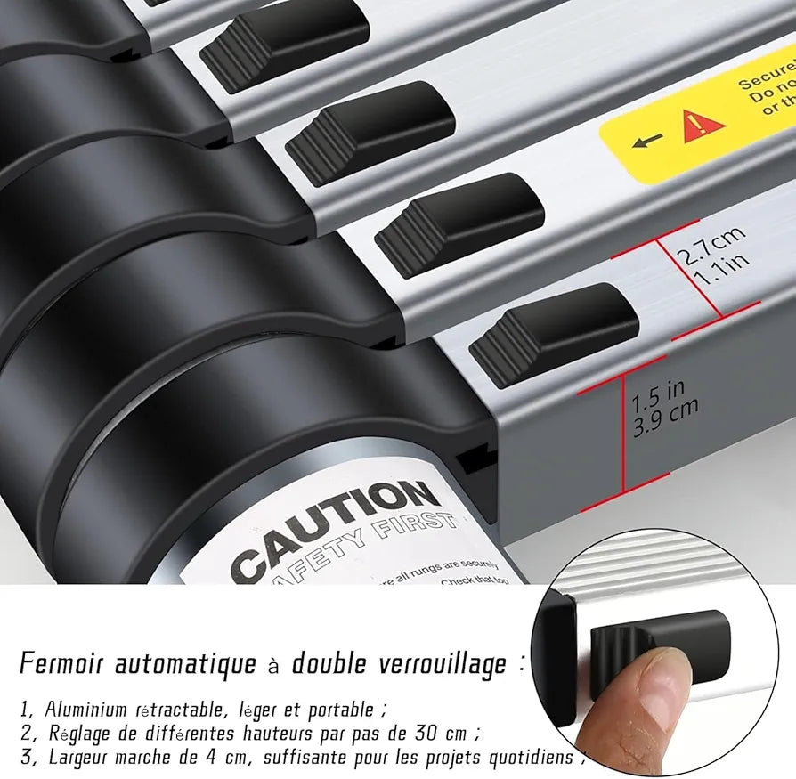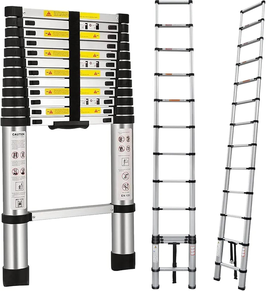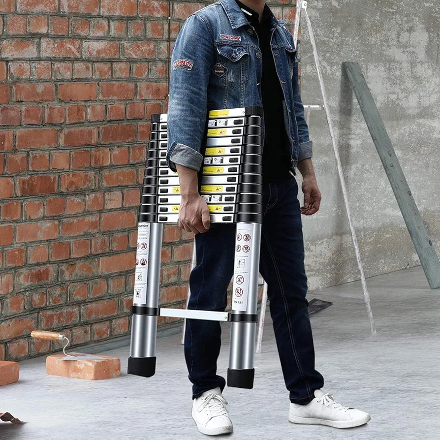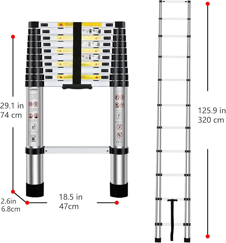 - Nešiojamos ir lengvai sandėliuojamos: Teleskopinių kopėčių maksimalus prailginimo aukštis yra 3,2 m, o jas galima sulankstyti iki 0,82 m x 0,49 m.