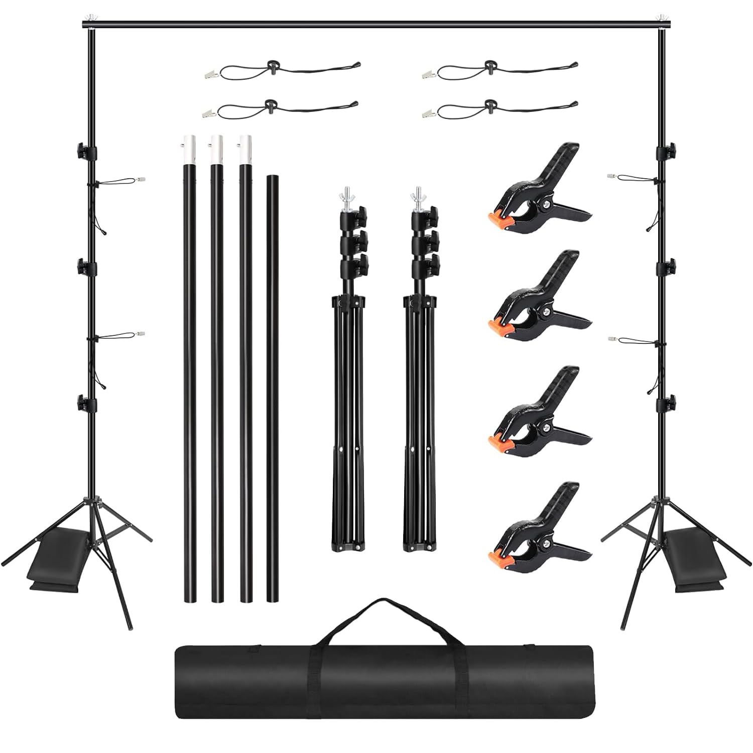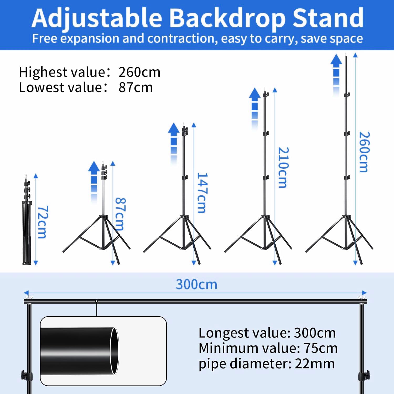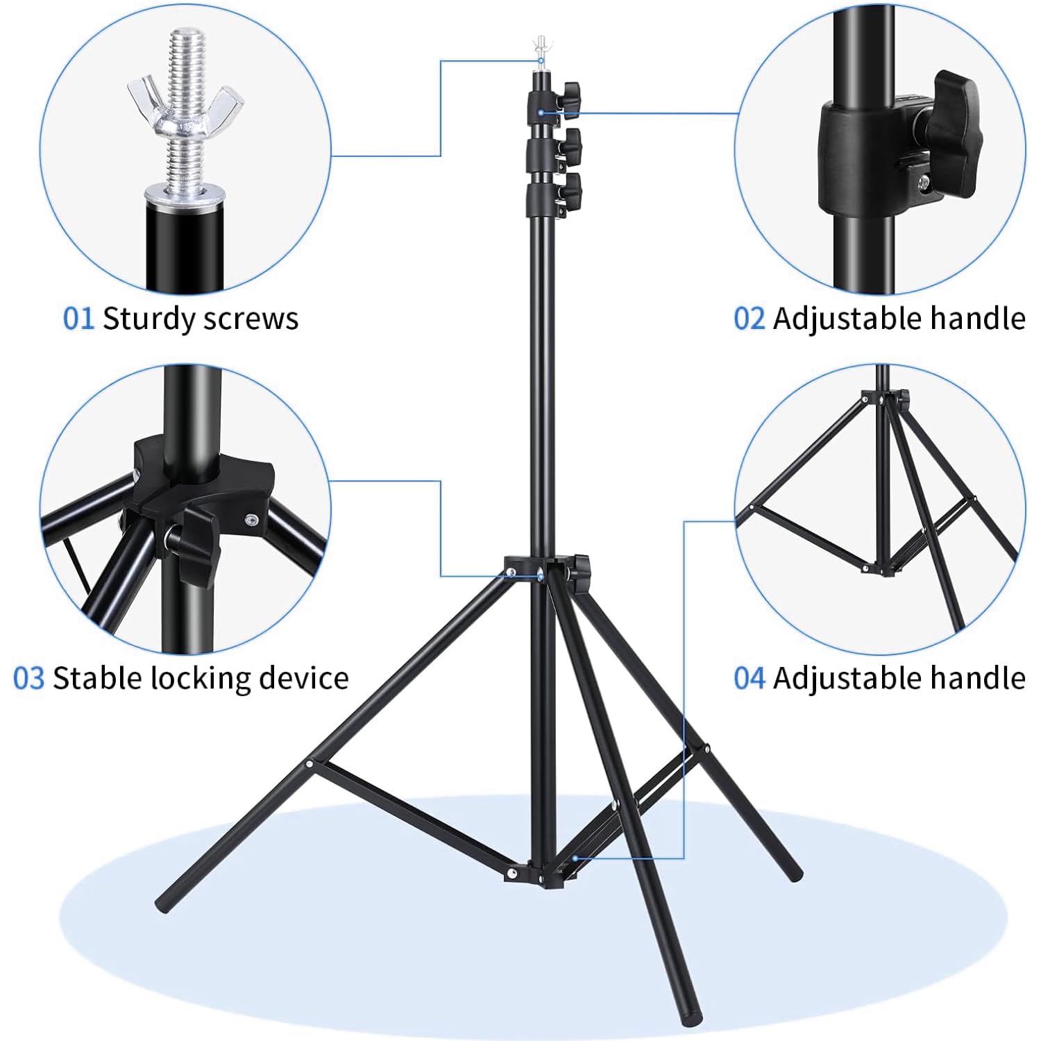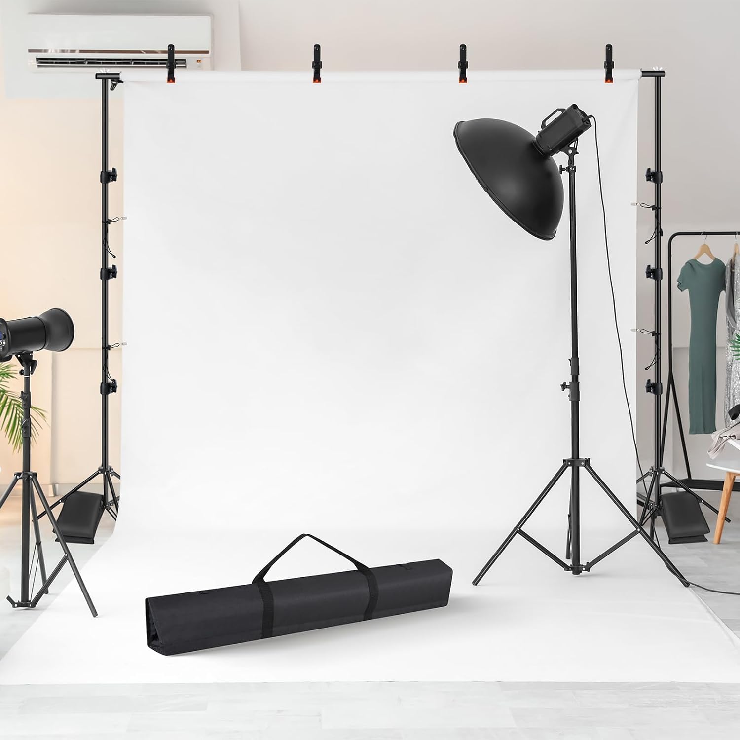 - - Tvirtas ir lengvas. Gaminys sveria 2,58 kg, o maksimali apkrova – 5 kg. Ant jo galima pakabinti skirtingus fonus, tokius kaip drobė, PVC, popierius ir kt. Komplekte taip pat yra du smėlio maišai, kuriuos galima naudoti norint dar labiau padidinti stovo stabilumą.