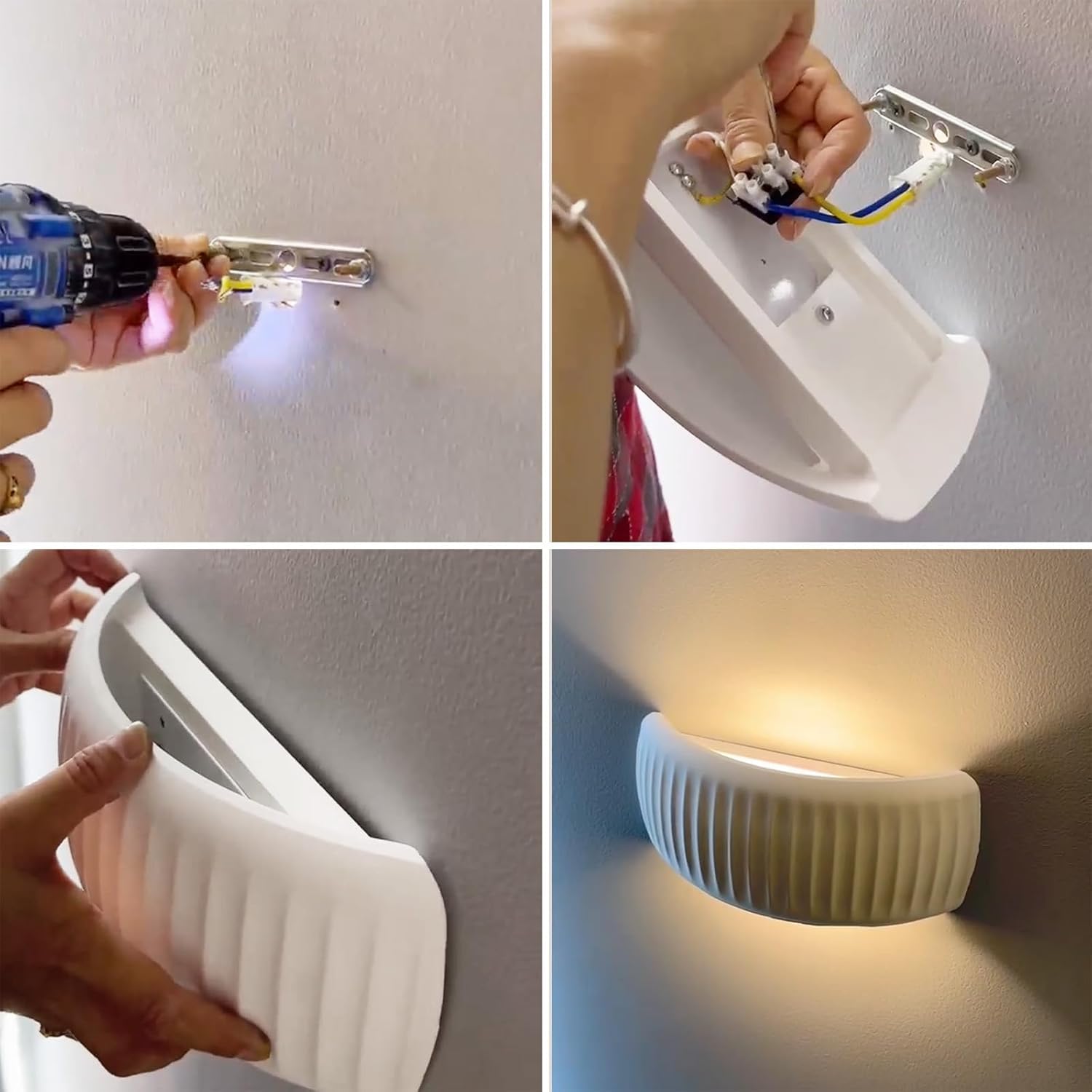 Komplekte kartu su tvirtinimu prie sienos ir šiltai balta LED lempute.