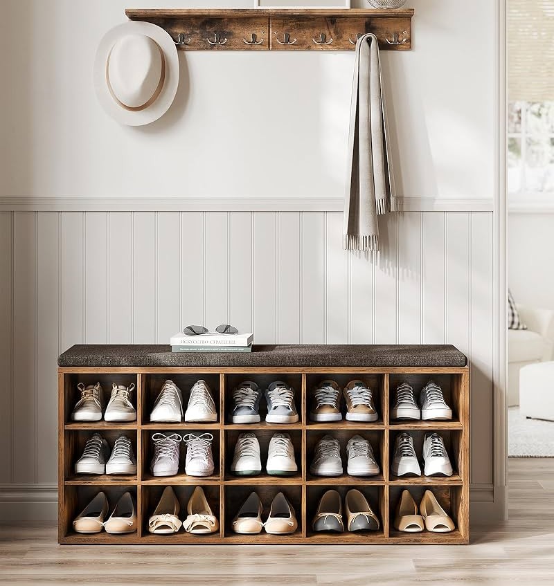 - Turi 15 atvirų skyrių, kad batus galėtumėte laikyti tvarkingai ir lengvai pasiekti; kiekvieno skyriaus gylis yra 30 cm.