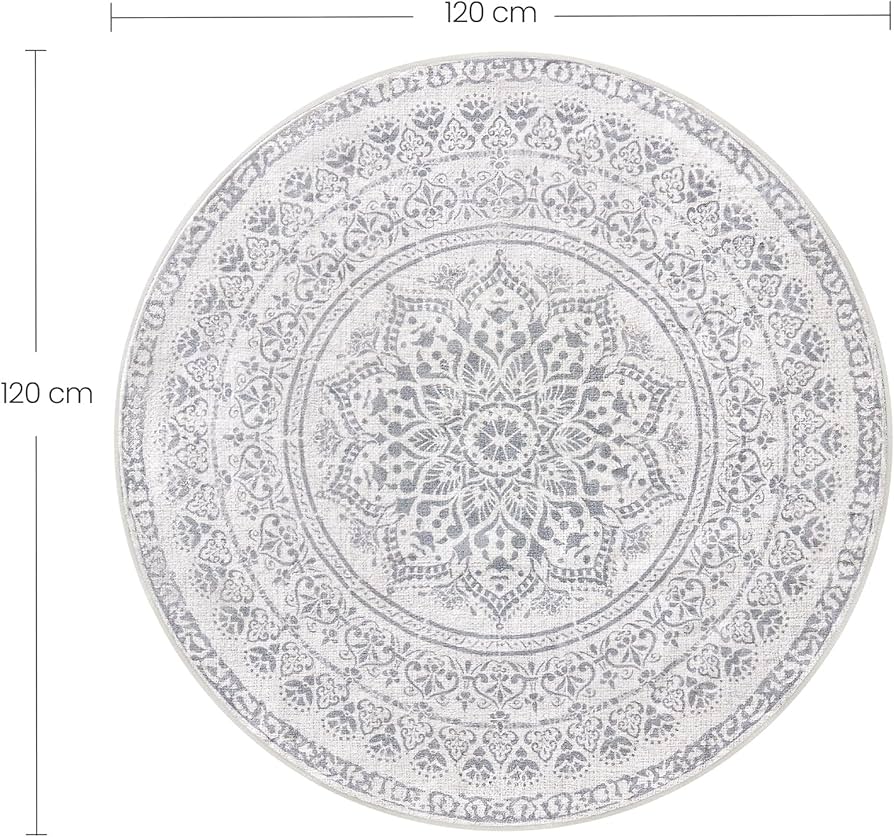 - Žemės atspalviais ir simetriškais raštais šis apvalus boho stiliaus kilimas suteikia jūsų kambariui unikalaus charakterio ir elegancijos.