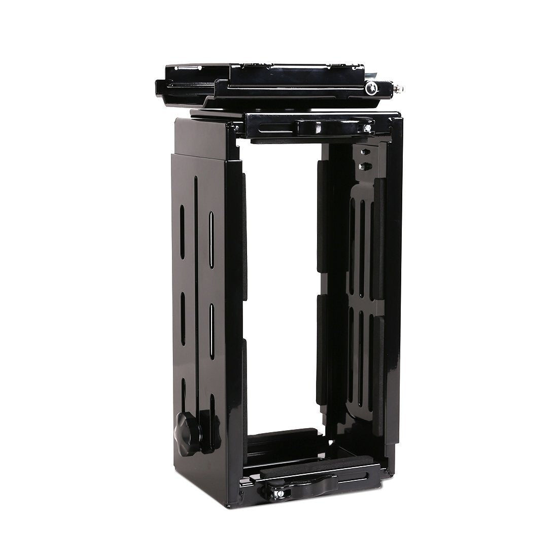 - Tvirta, plieninė konstrukcija saugiai laiko kompiuterį po stalu. Šis laikiklis ne tik puiki organizavimo priemonė, bet ir sumažina dulkių kaupimąsi bei vidinį užterštumą, taip pailgindamas kompiuterio tarnavimo laiką.